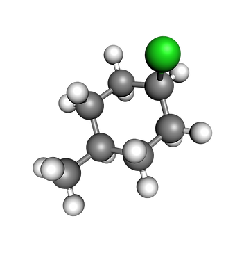 This haloalkane consists of seven carbon atoms (gray), thirteen hydrogen atoms (white) and one chlorine (green) atom.